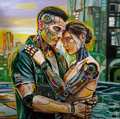 Zuerst baue ich in PhotoShop eine Collage, zur besseren Vorstellung des Gemäldes. Erst wenn die Collage steht fange ich an zu malen.